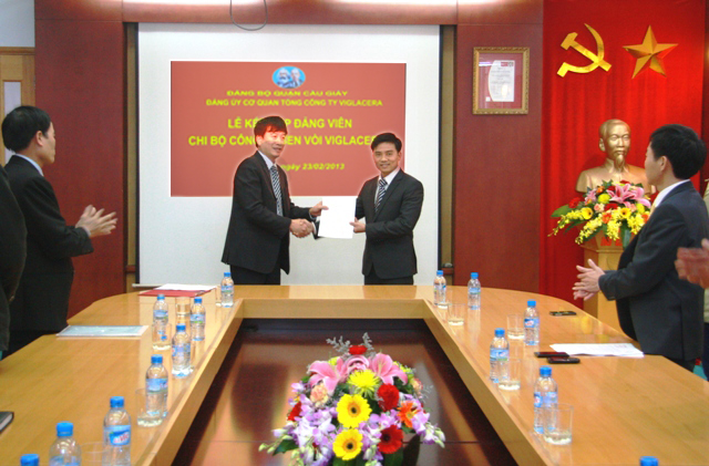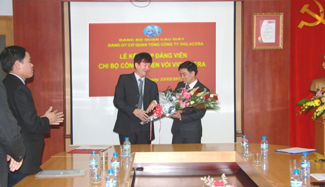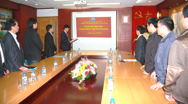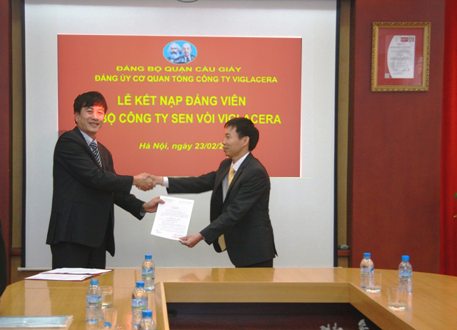 Thực hiện các Quyết định của Quận uỷ quận Cầu Giấy, về việc kết nạp đảng viên, Ngày 23/02/2013, tại trụ sở Tổng công ty Viglacera, Đảng ủy cơ quan Tổng công ty và Chi bộ Công ty Sen Vòi Viglacera tổ chức Lễ kết nạp đảng viên mới cho 02 quần chúng ưu tú đã có nhiều thành tích trong thời gian qua: Đồng chí Nguyễn Văn Tiến và đồng chí Nguyễn Hồng Phong.