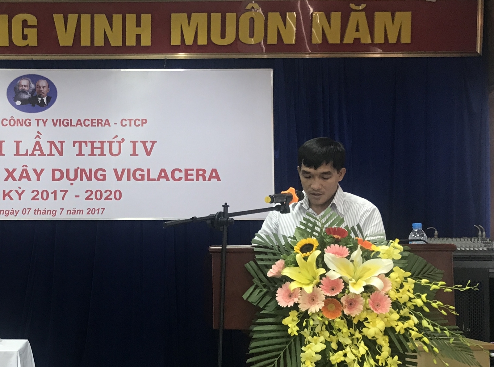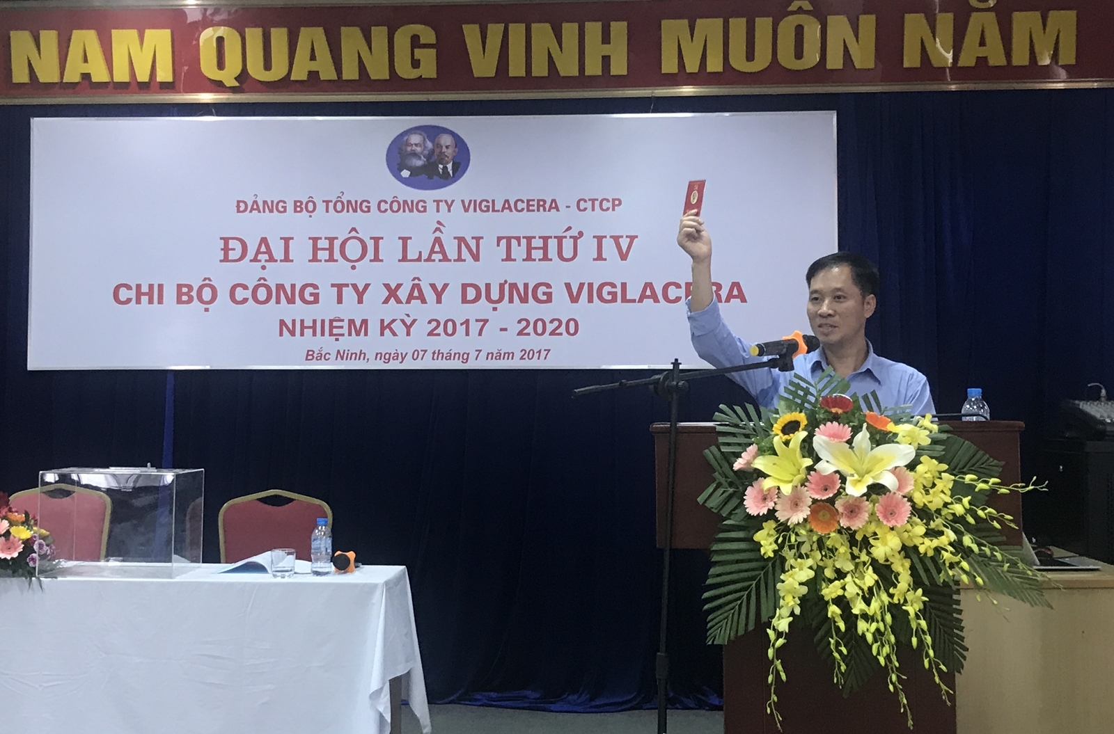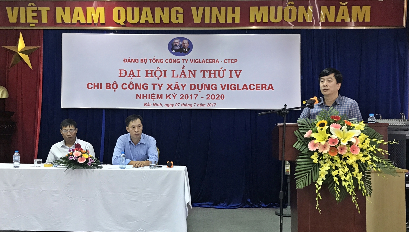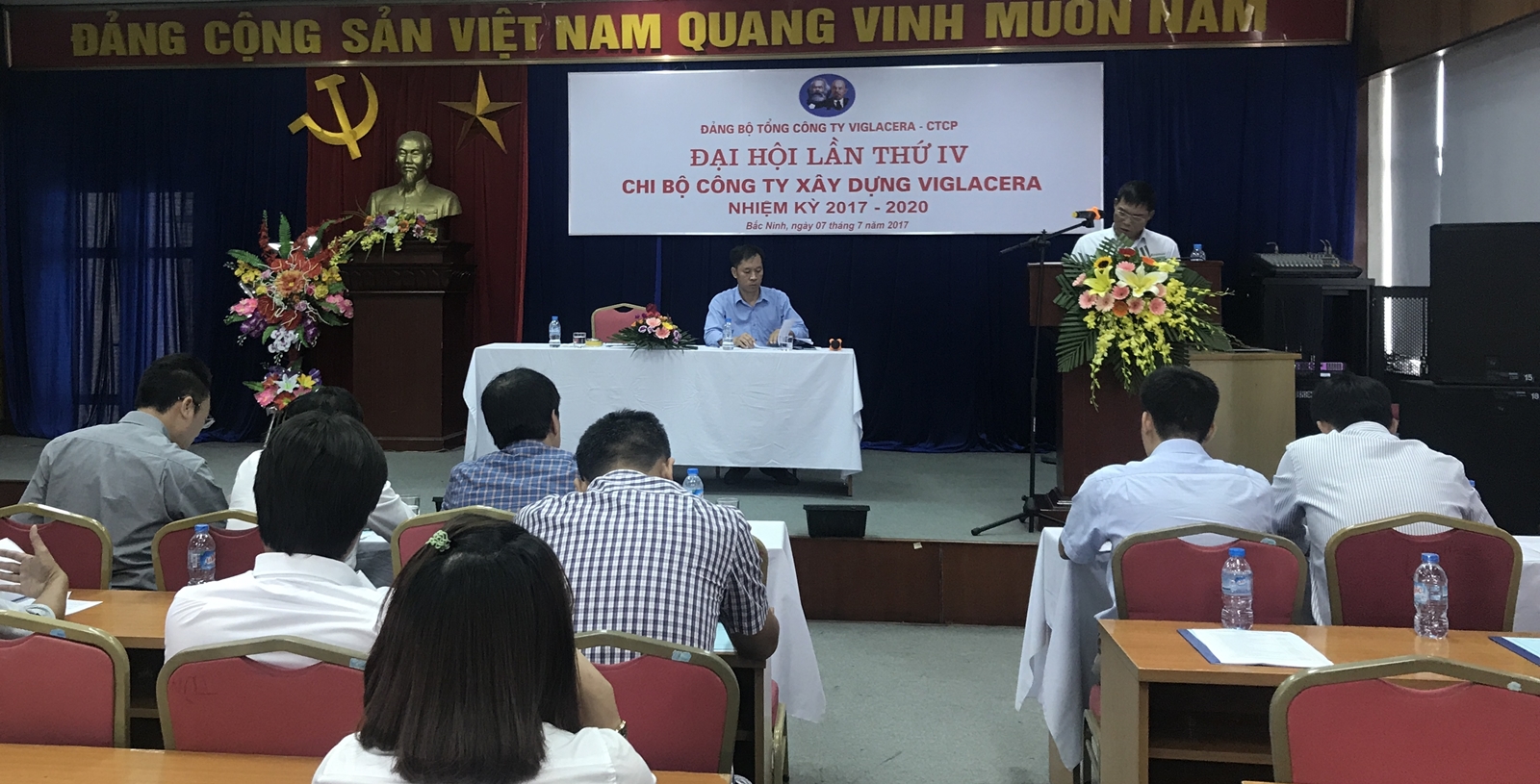 Thực hiện văn bản số 352 - KH/ĐU ngày 5/6/2017 của Đảng uỷ Tổng Công ty Viglacera - CTCP về Kế hoạch Tổ chức Đại hội các Chi bộ trực thuộc Đảng bộ Tổng công ty Viglacera - CTCP nhiệm kỳ 2017 – 2020; Sáng ngày 07 tháng 7 năm 2017, Chi bộ đảng Công ty Xây dựng Viglacera tổ chức Đại hội khóa IV nhiệm kỳ 2017 – 2020. Về dự và chỉ đạo Đại hội có Đồng chí Nguyễn Quý Tuấn, Ủy viên thường vụ đảng bộ Tổng công ty, Chủ tịch Công đoàn Tổng công ty; Đồng chí Nguyễn Thế Chinh, Ủy viên BCH đảng bộ Tổng công ty, Giám đốc Ban Viglacera Land; Nhiệm vụ của Đại hội Chi bộ Công ty Xây dựng Viglacera đã thông qua đánh giá kết quả thực hiện Nghị quyết Đại hội Chi bộ nhiệm kỳ 2015 - 2017; quyết định mục tiêu, phương hướng, nhiệm vụ và các giải pháp chủ yếu cho nhiệm kỳ 2017 - 2020; Bầu bí thư, Phó bí thư Chi bộ nhiệm kỳ 2017-2020.