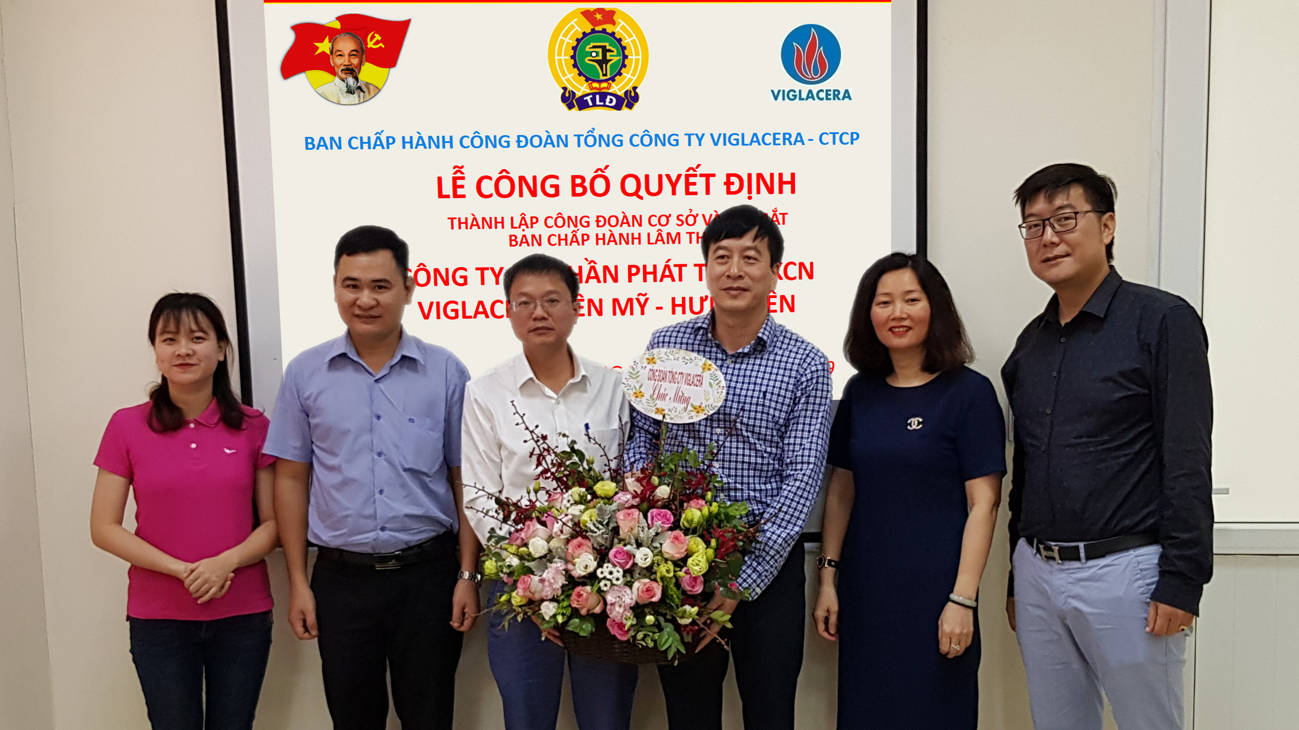Cũng tại buổi lễ, căn cứ Điều lệ Công đoàn Việt Nam và Hướng dẫn thi hành Điều lệ số 238/HD-TLĐ của Đoàn Chủ tịch TLĐLĐVN; căn cứ văn bản số 13/CV-CT-TCHC của Cty CP Phát triển KCN Viglacera Yên Mỹ - Hưng Yên về việc thành lập tổ chức Công đoàn trong doanh nghiệp và căn cứ Biên bản họp BCH Công đoàn TCty, Công đoàn TCty Viglacera – CTCP đã công bố quyết định thành lập Công đoàn Cty CP Phát triển KCN Viglacera Yên Mỹ - Hưng Yên, là công đoàn cơ sở trực thuộc Công đoàn TCty.