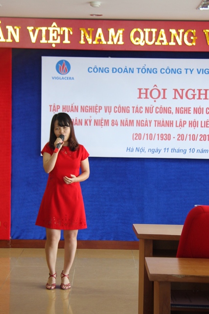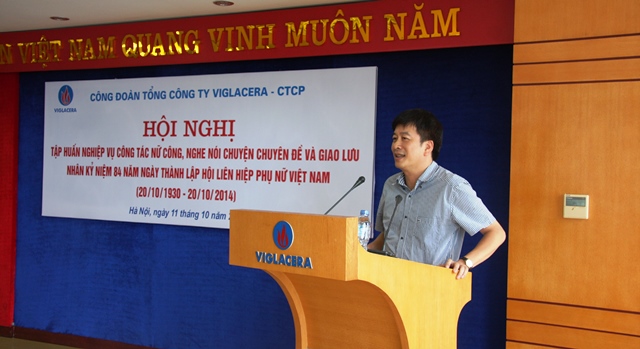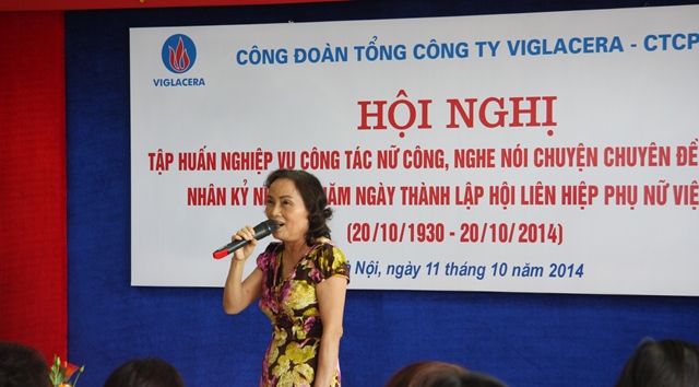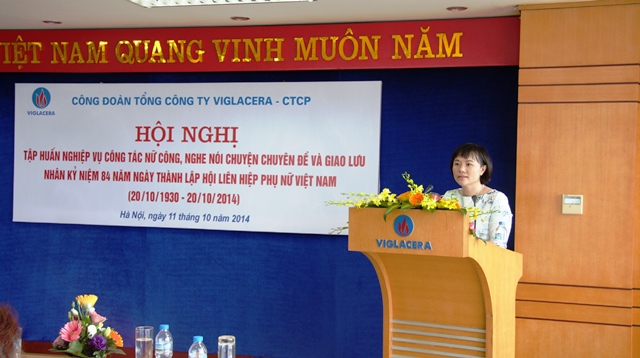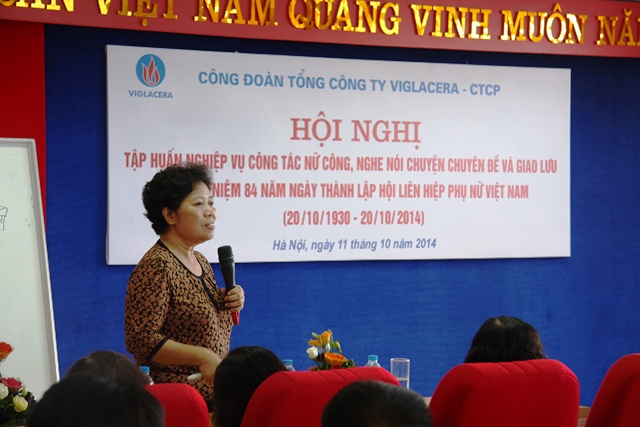 Nhân lễ kỷ niệm 84 năm ngày Thành lập Hội Liên hiệp phụ nữ Việt Nam 20/10, Công đoàn Tổng công ty Viglacera – CTCP đã tổ chức Hội nghị tập huấn nghiệp vụ công tác nữ công và nói chuyện chuyên đề về sức khỏe sinh sản và hạnh phúc gia đình cho CNVCLĐ TCT tại trụ sở TCT Viglacera, số 1 Đại lộ Thăng Long, Tp.Hà Nội. Qua đó, hàng trăm nữ CNVCLĐ Viglacera có dịp được  bổ sung kiến thức về gia đình và trẻ em cũng như giao lưu với các thế hệ nữ Công đoàn TCT  qua các thời kỳ.