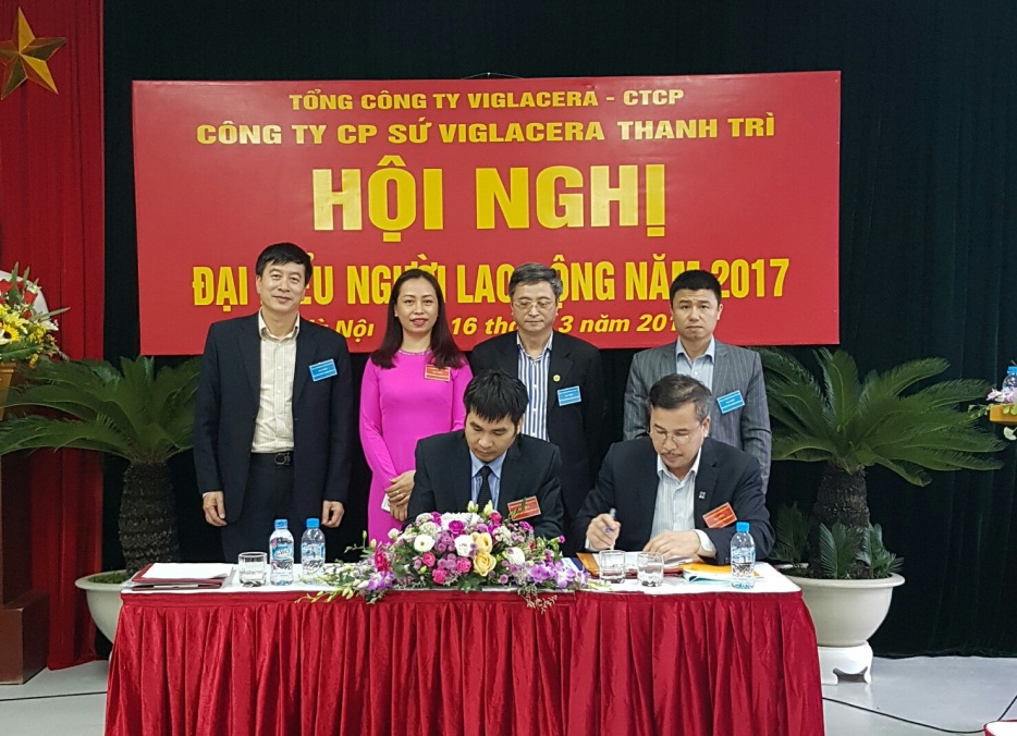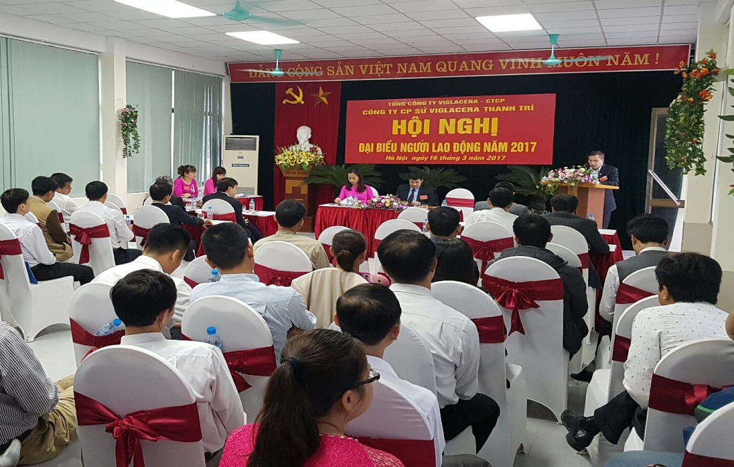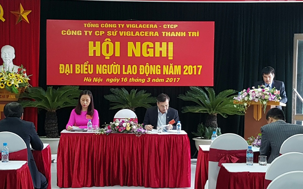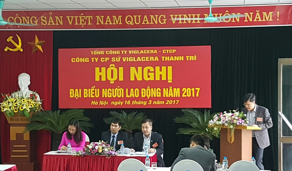 Chiều ngày 16/03/2017, Công ty cổ phần sứ Viglacera Thanh Trì đã tiến hành tổ chức Hội nghị người lao động năm 2017. Tới dự Hội nghị có đồng chí Nguyễn Quý Tuấn - Ủy viên Hội đồng quản trị, Chủ tịch Công đoàn Tổng Công ty Viglacera - CTCP; đ/c Nguyễn Minh Tuấn – Phó Tổng giám đốc Tổng Công ty Viglacera - CTCP, Chủ tịch Hội đồng quản trị Công ty Cổ phần sứ Viglacera Thanh Trì; Ông Luyện Anh Chiến – Uỷ viên BCH Liên đoàn lao động quận Hoàng Mai; cùng toàn thể Lãnh đạo và CBCNV Công ty Cổ phần Sứ Viglacera Thanh Trì.