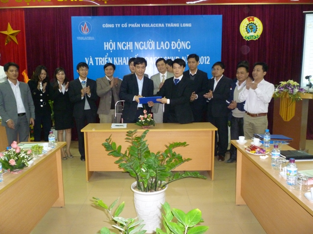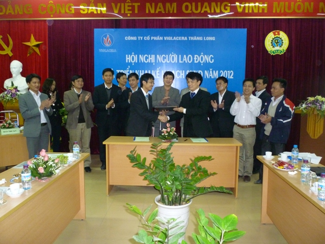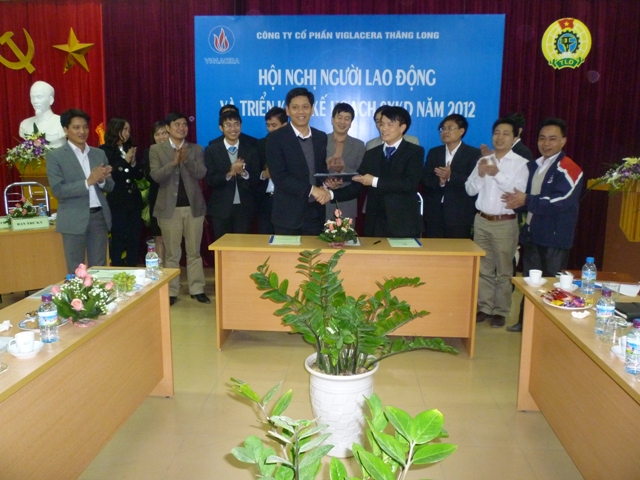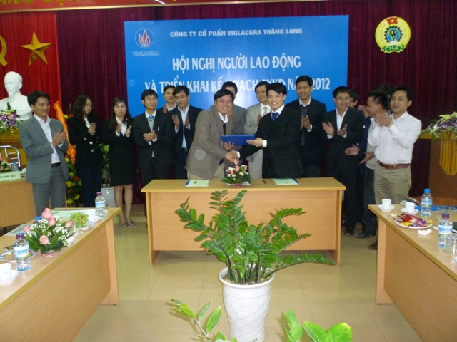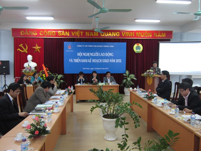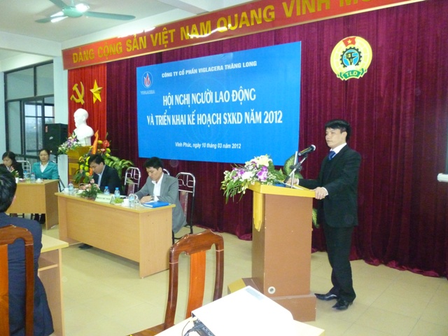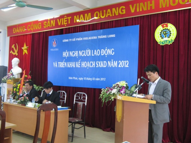 Cũng trong ngày 10/3, thực hiện Công văn số: 14/CV-VP ngày 1/2/2012 của Tổng công ty Viglacera về việc tổ chức Hôi nghị người lao động; Căn cứ kết quả cuộc họp Đại hội đồng cổ đông thường niên năm 2012; Công ty cổ phần Viglacera Thăng Long đã long trọng tổ chức “Hội nghị người lao động và triển khai kế hoạch SXKD năm 2012”.