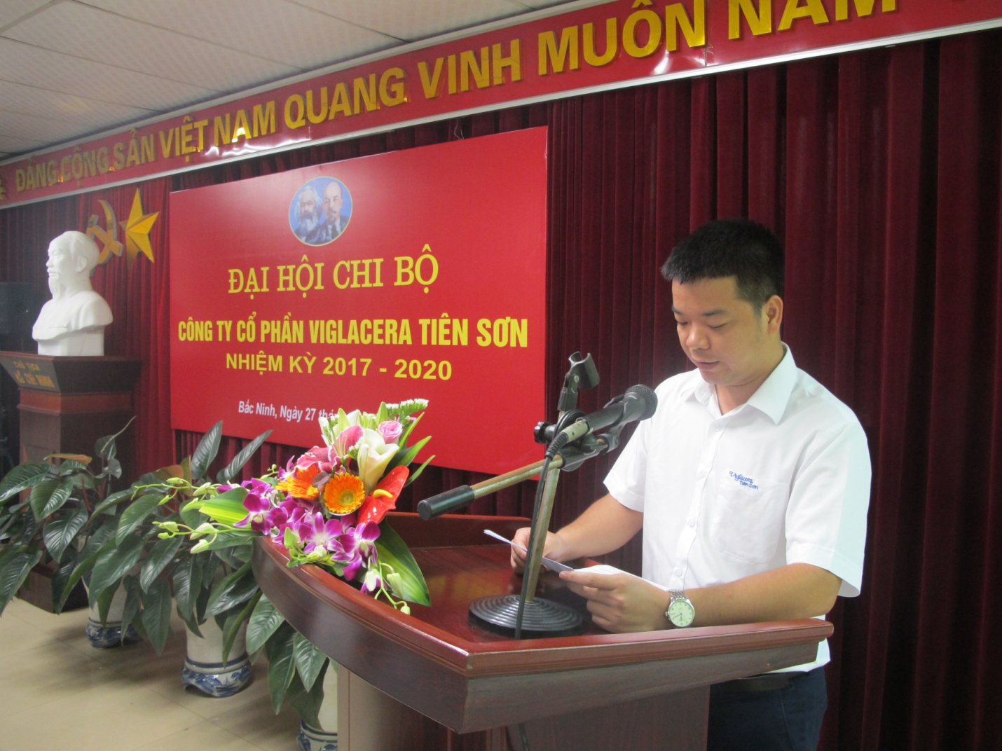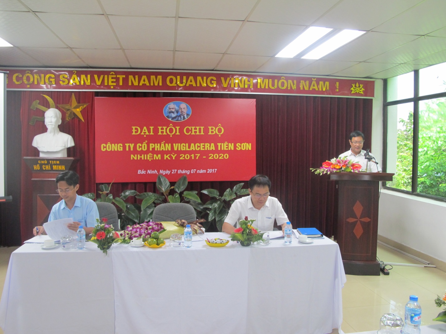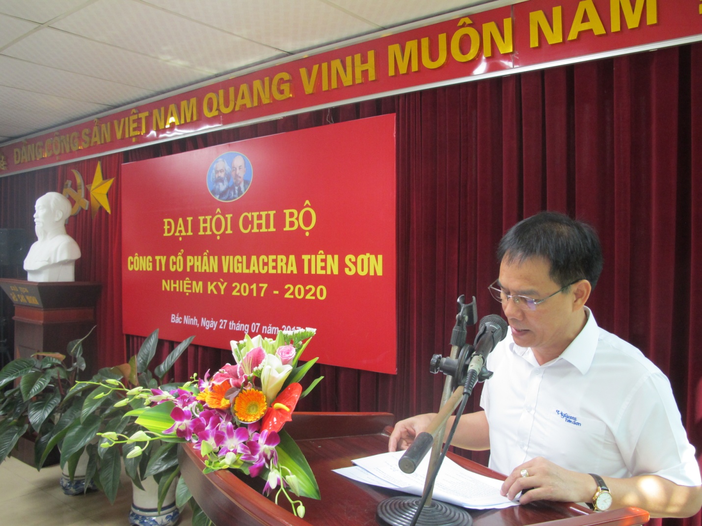 Tới dự và phát biểu chỉ đạo tại Đại hội, đồng chí Nguyễn Quý Tuấn - Ủy viên Ban Thường vụ Đảng ủy, Chủ tịch Công đoàn Tổng công ty Viglacera – CTCP đã biểu dương những kết quả đạt được của chi bộ Công ty cổ phần Viglacera Tiên Sơn. Trong nhiệm kỳ 2015 – 2017, Chi bộ đã hoàn thành các chỉ tiêu của TCT Viglacera – CTCP đặt ra và làm tốt công tác chăm lo đến việc làm và đời sống của cán bộ , đảng viên, công nhân lao động, thực hiện tốt các công tác xã hội, đoàn thể...