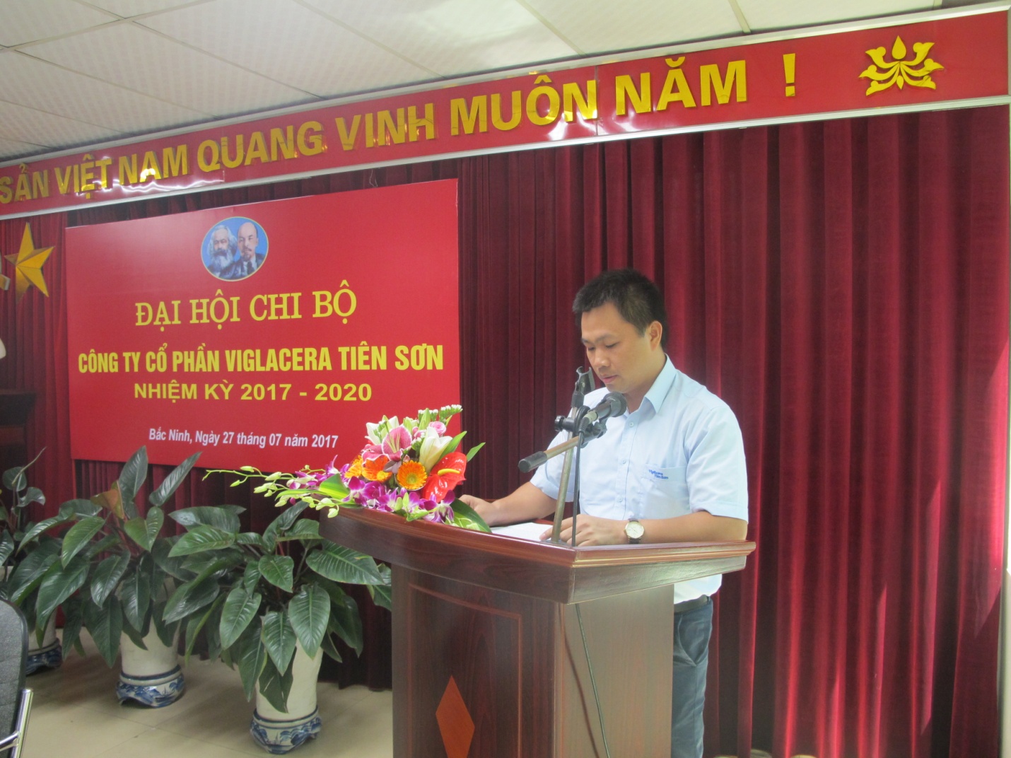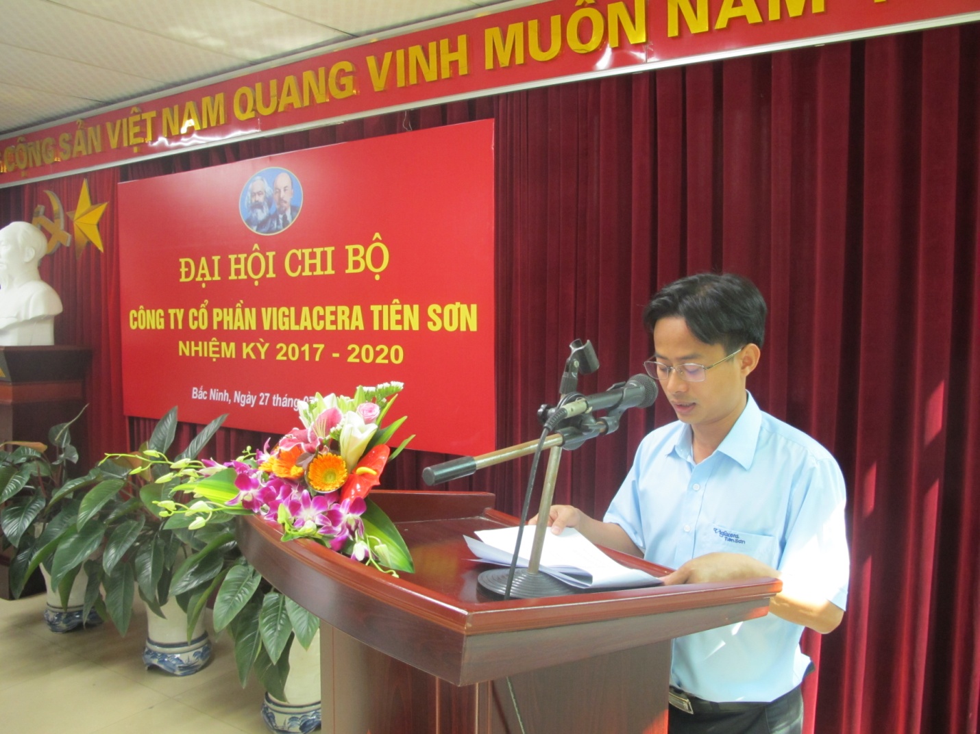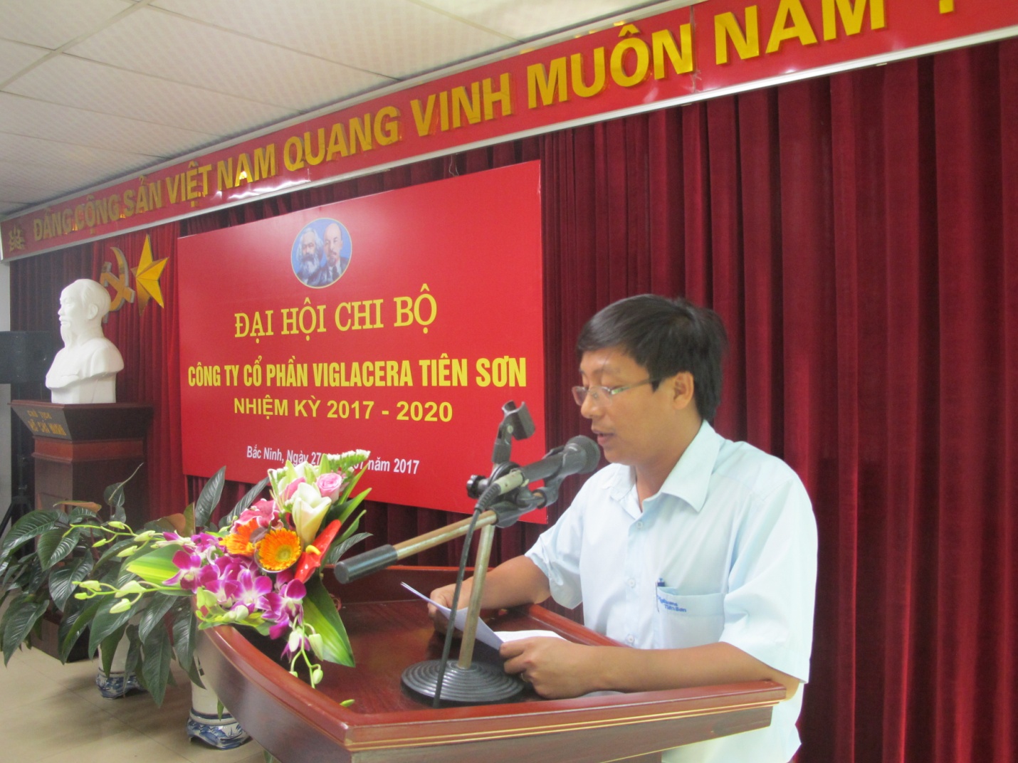 Tới dự và phát biểu chỉ đạo tại Đại hội, đồng chí Nguyễn Quý Tuấn - Ủy viên Ban Thường vụ Đảng ủy, Chủ tịch Công đoàn Tổng công ty Viglacera – CTCP đã biểu dương những kết quả đạt được của chi bộ Công ty cổ phần Viglacera Tiên Sơn. Trong nhiệm kỳ 2015 – 2017, Chi bộ đã hoàn thành các chỉ tiêu của TCT Viglacera – CTCP đặt ra và làm tốt công tác chăm lo đến việc làm và đời sống của cán bộ , đảng viên, công nhân lao động, thực hiện tốt các công tác xã hội, đoàn thể...