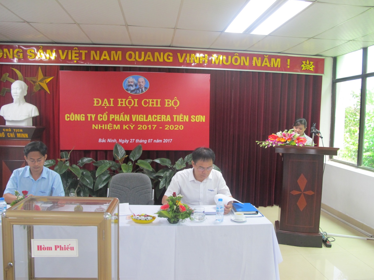 Ngày 27/7/2017  tại Hội trường Công ty cổ phần Viglacera Tiên Sơn đã tổ chức thành công Đại hội chi bộ nhiệm kỳ 2017 – 2020.