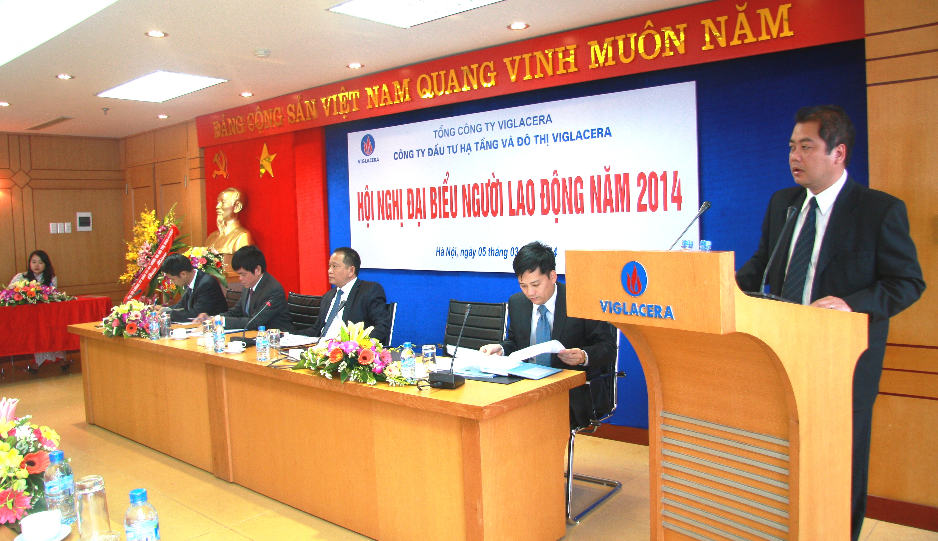 Ngày 05/03/2014, tại trụ sở số 1 Đại lộ Thăng Long - Hà Nôi, Công ty Đầu tư Hạ tầng và Đô thị Viglacera đã tổ chức Hội nghị người lao động năm 2014. Về dự Hội nghị có đồng chí Trần Ngọc Anh - Phó tổng giám đốc TCT, Giám đốc Ban Bất động sản, đồng chí Nguyễn Anh Tuấn – Phó tổng giám đốc TCT; đồng chí Nguyễn Quý Tuấn - Chủ tịch Công đoàn TCT; đại diện Phòng, Ban TCT cùng các đại biểu đến từ Công ty Đầu tư Hạ tầng và Đô thị Viglacera.