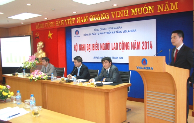 Thực hiện văn bản số 09/CĐ-VP ngày13/01/2014 của Công đoàn Tổng công ty Viglacera về việc Tổ chức thực hiện Quy chế dân chủ và tổ chức Hội nghị người lao động năm 2014, ngày 04/03/2014, tại trụ sở số 1 Đại lộ Thăng Long - Hà Nôi, Công ty Đầu tư Phát triển Hạ tầng Viglacera đã tổ chức Hội nghị người lao động năm 2014.