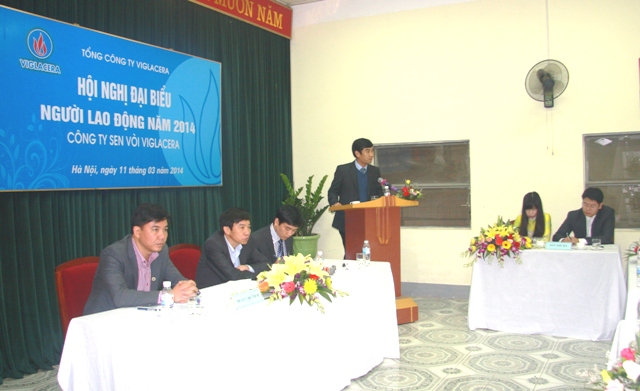 Ngày 11/03/2014, tại Hà Nội, Công ty Sen vòi Viglacera đã tổ chức Hội nghị người lao động năm 2014. Về dự Hội nghị có đồng chí Nguyễn Anh Tuấn - Tổng giám đốc TCT; đồng chí Nguyễn Minh Tuấn Phó Tổng giám đốc TCT, đồng chí Nguyễn Quý Tuấn - Chủ tịch Công đoàn TCT cùng đại diện các Phòng, Ban TCT cùng các đại biểu thuộc Công ty Sen vòi Viglacera.