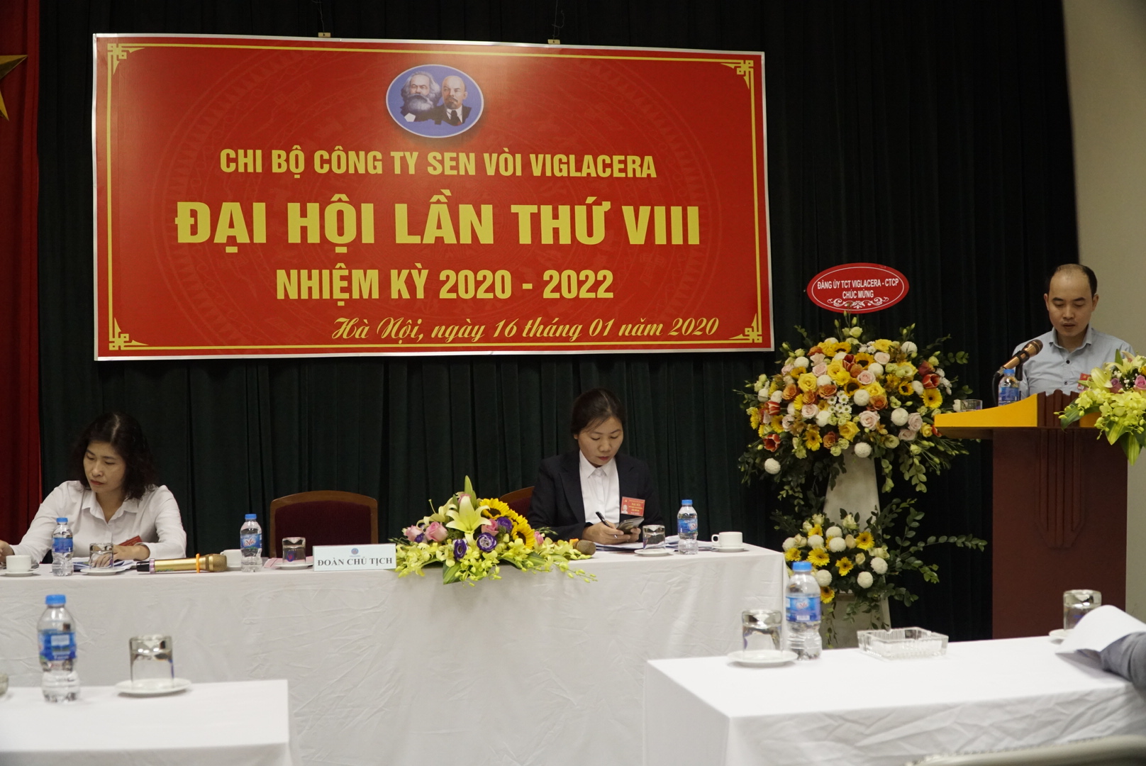 Đại hội đã nghe đồng chí Nguyễn Văn Tiến - Bí thư Chi bộ đọc dự thảo báo cáo chính trị của Chi bộ, báo cáo kiểm điểm của Ban chi ủy nhiệm kỳ 2017-2020 và nghe một số ý kiến phát biểu tham luận về hoạt động sản xuất kinh doanh của Công ty. Báo cáo chính trị và ý kiến tham luận tại Đại hội đã khẳng định: Trong nhiệm kỳ qua, dưới sự lãnh đạo của Đảng ủy Tổng công ty Viglacera, Chi bộ Công ty đã có nhiều chuyển biển tích cực trong tất cả các lĩnh vực. Công tác xây dựng Đảng đã được chú trọng, phát huy được vai trò lãnh đạo, chỉ đạo, góp phần vào việc thực hiện tốt các nhiệm vụ chính trị của đơn vị. Những kết quả này đã khẳng định vai trò quan trọng của Chi bộ, Ban Giám đốc và toàn thể cán bộ đảng viên.