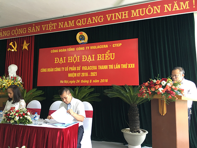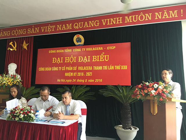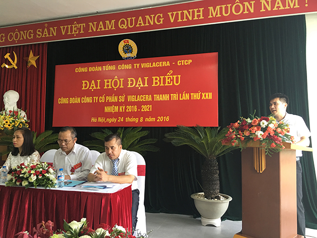 Thực hiện Điều lệ Công đoàn Việt Nam và Kế hoạch Đại hội CĐCS tiến tới Đại hội Công đoàn Tổng công ty Viglacera - CTCP, ngày 24 tháng 8 năm 2016, tại Hội trường Công ty CP Sứ Viglacera Thanh Trì đã diễn ra Đại hội Công đoàn Công ty CP Sứ Viglacera Thanh Trì lần thứ XXII, nhiệm kỳ 2016 – 2021.