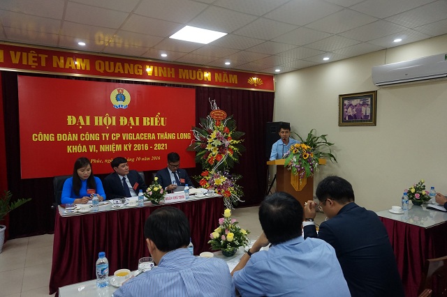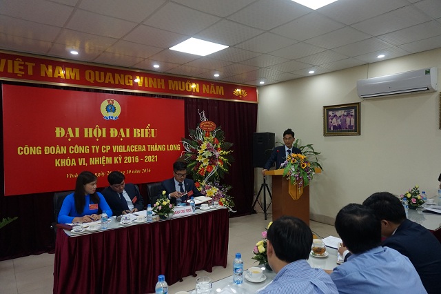Thực hiện Điều lệ Công đoàn Việt Nam và Kế hoạch Đại hội CĐCS tiến tới Đại hội Công đoàn Tổng công ty Viglacera - CTCP, ngày 27 tháng 10 năm 2016, tại Hội trường Công ty cổ phần Viglacera Thăng Long đã tổ chức thành công Đại hội Công đoàn Công ty lần thứ VI, nhiệm kỳ 2016-2021.