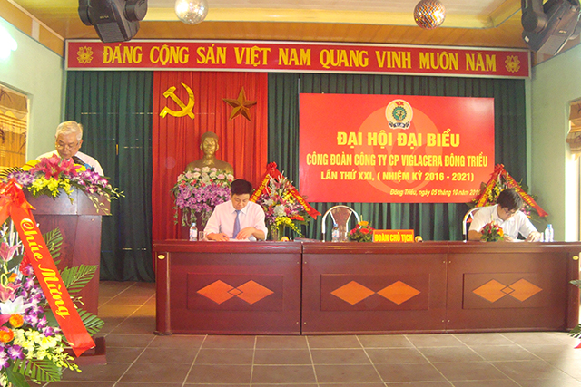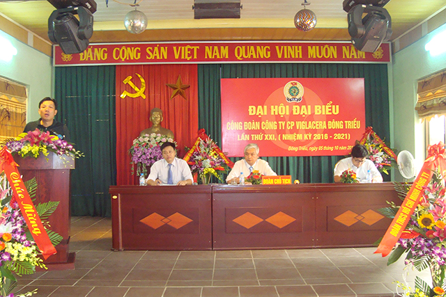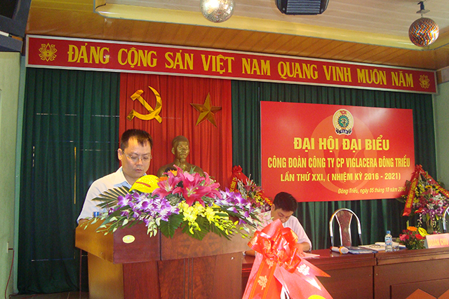 Thực hiện kế hoạch số 84/KH-CĐ ngày 6/6/2016 của Công đoàn Tổng công ty Viglacera-CTCP về tổ chức Đại hội công đoàn cơ sở, tiến tới Đại hội Công đoàn Tổng công ty lần thứ IX, nhiệm kỳ 2017-2022. Ngày 5/10/2016 Công đoàn Công ty cổ phần Viglacera Đông Triều long trọng tổ chức Đại hội Công đoàn lần thứ XXI, nhiệm kỳ 2016-2021.