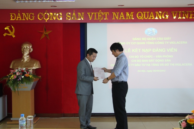 Đảng bộ cơ quan Tổng công ty Viglacera là 1 trong 2 Đảng bộ thuộc khối doanh nghiệp vinh dự được nhận khen thưởng TCCS Đảng trong sạch vững mạnh tiêu biểu năm 2012 của BCH Đảng bộ Quận Cầu Giấy.