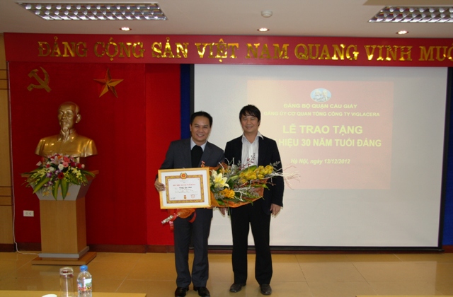 Ngày 13 /12/2012 tại trụ sở Tòa nhà Viglacera, số 1 Đại lộ Thăng Long, Hà Nội, Đảng ủy cơ quan TCT đã tổ chức lễ trao tặng huy hiệu 30 năm tuổi Đảng cho đồng chí Trương Ngọc Minh và phối hợp với Chi bộ Ban Bất động sản và chi bộ Ban Tài chính Đầu tư Tổng công ty Viglacera long trọng tổ chức buổi lễ kết nạp Đảng viên mới cho 4 công đoàn viên ưu tú.