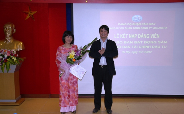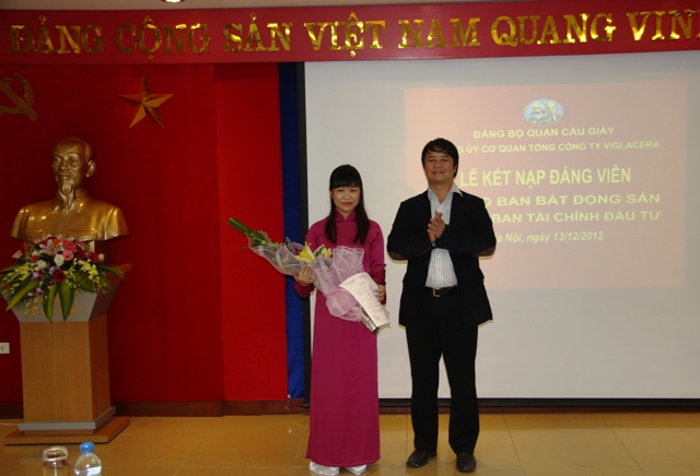 Trải qua quá trình rèn luyện, phấn đấu học tập và lao động tích cực cùng với lập trường tư tưởng chính trị vững vàng, 4 công đoàn viên ưu tú Nguyễn Thị Thu Hương, Nguyễn Thị Cẩm Vân, Lê Ngân Bình, Lê Thị Phương Thảo đã được Ban Chấp hành Đảng ủy Tổng công ty Viglacera chính thức làm lễ kết nạp vào Đảng. Trong không khí trang trọng của buổi lễ, các Đảng viên mới tuyên thệ trước Đảng kỳ, Quốc kỳ, chân dung Chủ tịch Hồ Chí Minh vĩ đại, nguyện trung thành với lý tưởng và mục tiêu Cách mạng của Đảng, thực hiện nghiêm túc các nhiệm vụ của người Đảng viên, đóng góp tích cực vào việc xây dựng Đảng, xứng đáng là Đảng viên của Đảng cộng sản Việt Nam. Các Đảng viên xin hứa sẽ không ngừng học tập, phấn đấu, xây dựng tinh thần đoàn kết nội bộ, phát huy sức mạnh tập thể; đóng góp sức mình vào việc thực hiện hoàn thành các nhiệm vụ, mục tiêu chính trị, kinh tế của Tổng công ty trong thời gian tới.