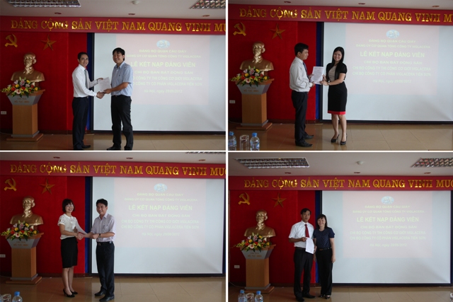 Ngày 29/06/2012 tại phòng hội trường tầng 15, Tổng Công ty Viglacera, Đảng ủy Cơ quan Tổng công ty Viglacera và Chi ủy các chi bộ Ban Bất động sản, chi bộ Công ty Thi công cơ giới Viglacera, chi bộ Công ty CP Viglacera Tiên Sơn đã tổ chức lễ kết nạp Đảng viên cho 04 quần chúng ưu tú: