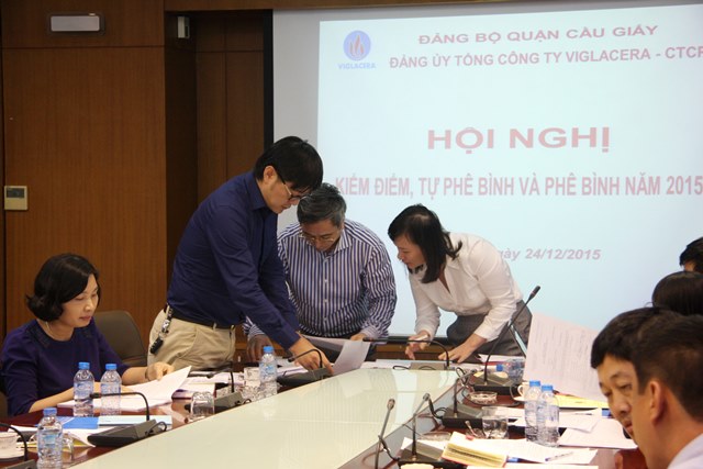 Thực hiện văn bản số 56-CV/QU ngày 25/11/2015 của Quận ủy Cầu Giấy về việc Kiểm điểm tập thể, cá nhân và đánh giá chất lượng tổ chức cơ sở Đảng, Đảng viên năm 2015, ngày 24/12, Đảng ủy TCT Viglacera – CTCP đã tổ chức Hội nghị kiểm điểm, tự phê bình và phê bình năm 2015.