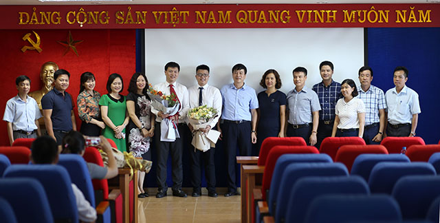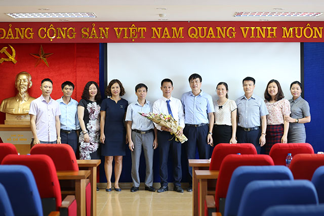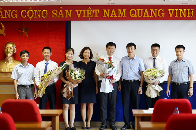 Ủy viên BTV Đảng Bộ TCT Viglacera và các đồng chí Bí thư Chi bộ Ban Bất động sản, Chi bộ Công ty Sen vòi Viglacera và Chi bộ Công ty cổ phần Kinh doanh Gạch ốp lát Viglacera chúc mừng 4 đồng chí Đảng viên mới