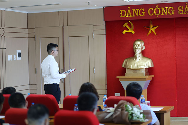 Đồng chí Nguyễn Minh Hiến – Phó Bí thư Chi bộ Công ty CP Kinh doanh Gạch ốp lát Viglacera trao Quyết định kết nạp đảng viên cho đồng chí Nguyễn Quang Nam