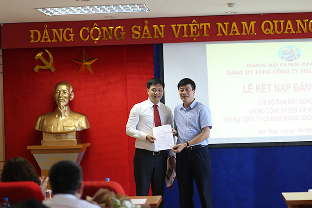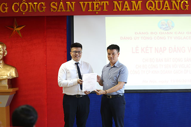 Ngày 19/06/2018, tại trụ sở Tòa nhà Viglacera, số 1 Đại lộ Thăng Long, Hà Nội, Đảng ủy Tổng công ty Viglacera – CTCP đã phối hợp với Chi bộ Ban Bất động sản, Chi bộ Công ty Sen vòi Viglacera và Chi bộ Công ty cổ phần Kinh doanh Gạch ốp lát Viglacera tổ chức Lễ kết nạp Đảng cho bốn quần chúng ưu tú.