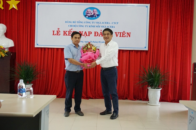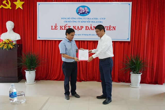 Trước đó, ngày 18/6, Chi bộ Công ty Kính nổi Viglacera tại Bình Dương cũng tổ chức Lễ kết nạp Đảng viên mới cho đồng chí Huỳnh Anh Thắng