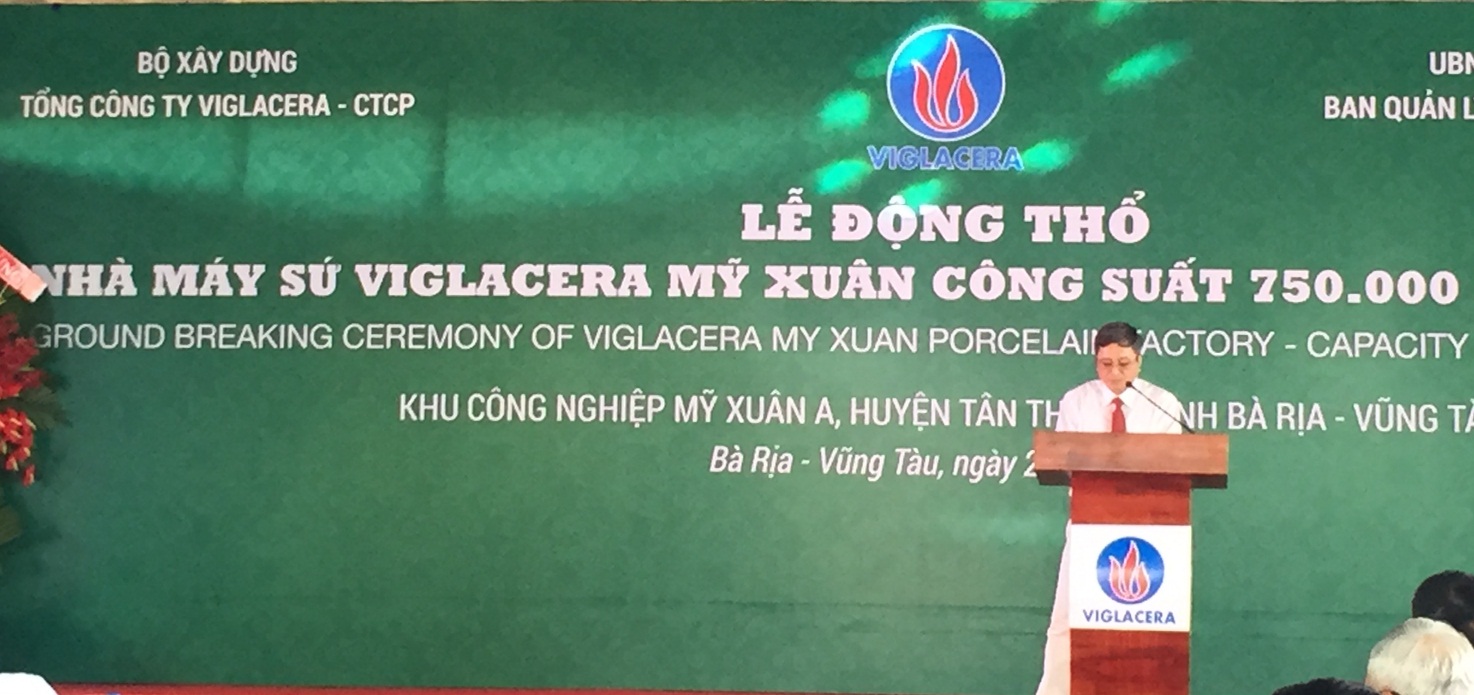 Phát biểu chỉ đạo và phát lệnh Lễ động thổ dự án tại buổi lễ, Bộ trưởng Bộ Xây dựng Phạm Hồng Hà đề nghị tập thể lãnh đạo Viglacera cùng phối hợp với sự hỗ trợ của địa phương thúc đẩy tiến độ hoàn thành chấp hành đúng pháp luật đảm bảo an toàn lao động, vệ sinh môi trường…, khi nhà máy sứ Viglacera Mỹ Xuân đi vào hoạt động sẽ góp phần thúc đẩy kinh tế của địa phương và sẽ cung cấp ra thị trường những sản phẩm chất lượng cao khẳng định uy tín thương hiệu của Viglacera - một đơn vị đầu ngành của Bộ xây dựng.