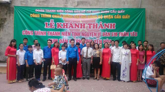 Sau một thời gian khẩn trương thi công với chất lượng cao, cùng với sự chung tay của Đoàn Thanh niên Tổng công ty Viglacera, công trình đã được khánh thành sáng ngày 28/8/2015 tại Tổ dân phố số 7 Phường Yên Hòa quận Cầu Giấy. Đây là công trình thứ 11 được hoàn thành cùng với sự chung tay xây dựng của các đoàn viên thanh niên khối công nhân viên chức trong Quận dưới sự chỉ đạo của Quận Đoàn Cầu Giấy và là hoạt động hết sức có ý nghĩa thể hiện sự quan tâm, chăm sóc, tạo sân chơi phong phú, thiết thực, lành mạnh, bổ ích cho các em thiếu niên, nhi đồng trong địa bàn.