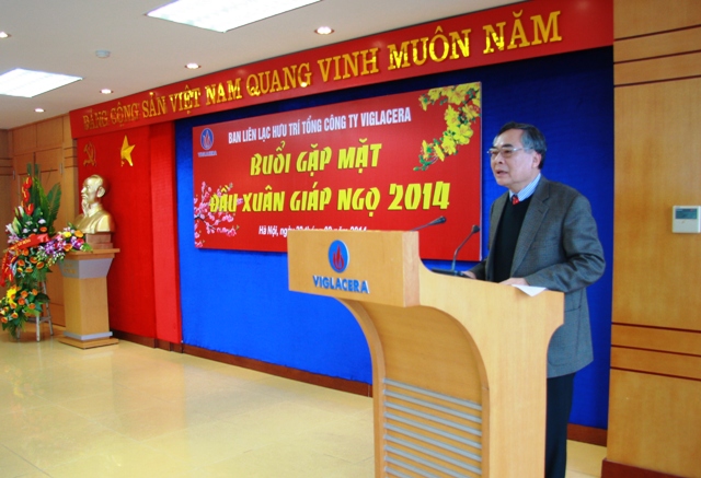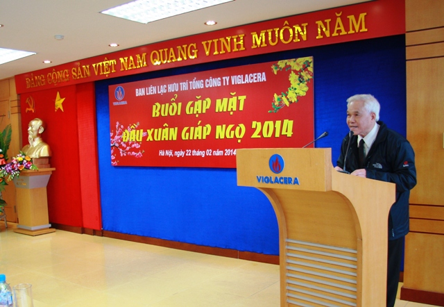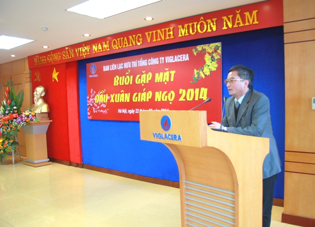 Thay mặt các cụ hưu trí, đồng chí Vũ Tất Ban - Trưởng Ban liên lạc hưu trí Bộ Xây dựng phát biểu chúc mừng tập thể lãnh đạo, CBCNV TCT Viglacera đã được những thành quả ấn tượng trong năm 2013 và khẳng định bước sang năm 2014, các cán bộ hưu trí sẽ luôn dõi theo từng bước đi của Viglacera, tiếp tục đóng góp, chia sẻ kinh nghiệm của mình cùng toàn thể lãnh đạo, CBNV Viglacera phấn đấu hoàn thành xuất sắc mọi nhiệm vụ Đảng, Chính phủ, Bộ Xây dựng giao.