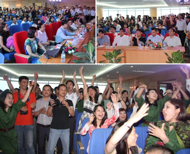 Cũng trong Hội diễn Văn nghệ Cụm 6, chúng tôi nhận ra những đồng chí lãnh đạo các Công ty đều hiện diện và cổ vũ nhiệt tình. Không chỉ tạo điều kiện về thời gian tập luyện, tài chính, các anh còn có những đóng góp về “chuyên môn biểu diễn” cho “đoàn nghệ thuật” của mình đem chuông đi dự giải đấu văn nghệ của Công đoàn TCty. Đó là anh Nguyễn Văn Lý – người lên ý tưởng tiểu phẩm hài “Kén rể”. Là anh Phạm Anh Tuấn – Giám đốc Sàn Giao dịch BĐS VIGLACERA, một “ca sĩ bất đắc dĩ” trong tiết mục duy nhất của Công ty Kinh doanh BĐS VIGLACERA, người mà theo chính tiết lộ của anh: “Chỉ tham gia luyện tập cùng Đội có 2 buổi cuối cùng”. Cùng với đó là những người không xuất hiện trên “đấu trường rộn vang lời ca khúc nhạc”, đó là những cán bộ hậu cần chăm lo bồi dưỡng sức khỏe trong những ngày luyện tập, lo trang phục cho cuộc thi… Thậm chí có Công ty còn khéo “ngoại giao” đến độ họ có được những người bạn ở nhà hàng tầng 1, sẵn lòng cho mượn địa điểm luyện tập ngoài giờ!