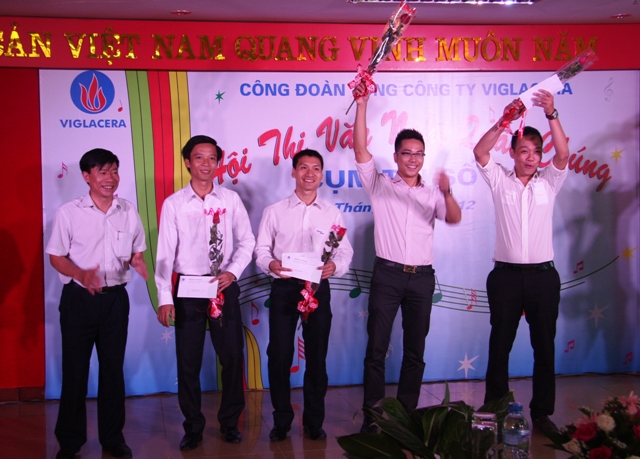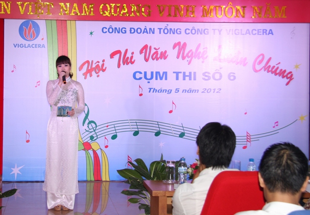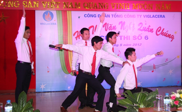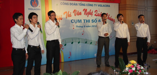 Ngày 26/5 đã diễn ra Hội diễn Văn nghệ quần chúng VIGLACERA 2012 – Cụm thi số 6. Tham gia tranh tài lần này có đại diện của 7 đội văn nghệ đến từ: Cơ quan TCty, Công ty CP Thương mại VIGLACERA, Công ty cổ phần VIGLACERA Hà Nội, Công ty Kinh doanh BĐS VIGLACERA, Công ty CP Tư vấn VIGLACERA, Công ty Hạ tầng và Đô thị VIGLACERA, Công ty Đầu tư PTHT VIGLACERA.