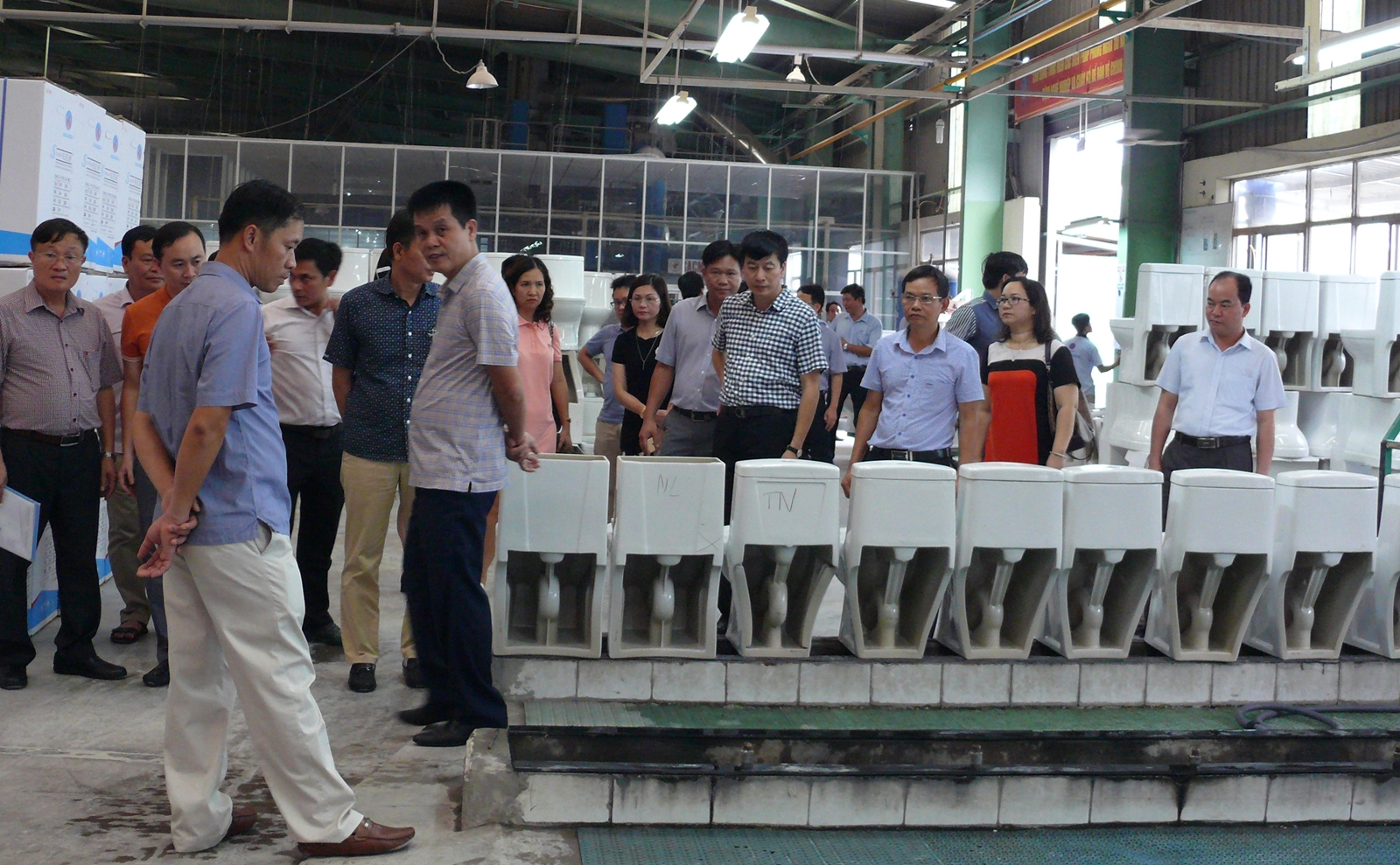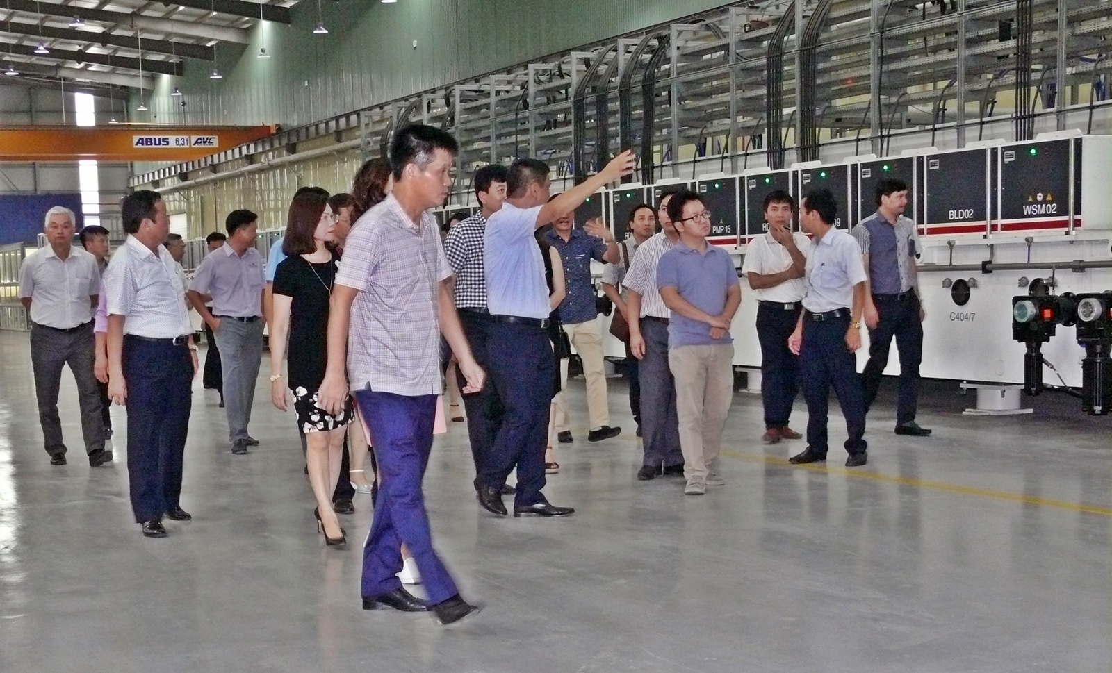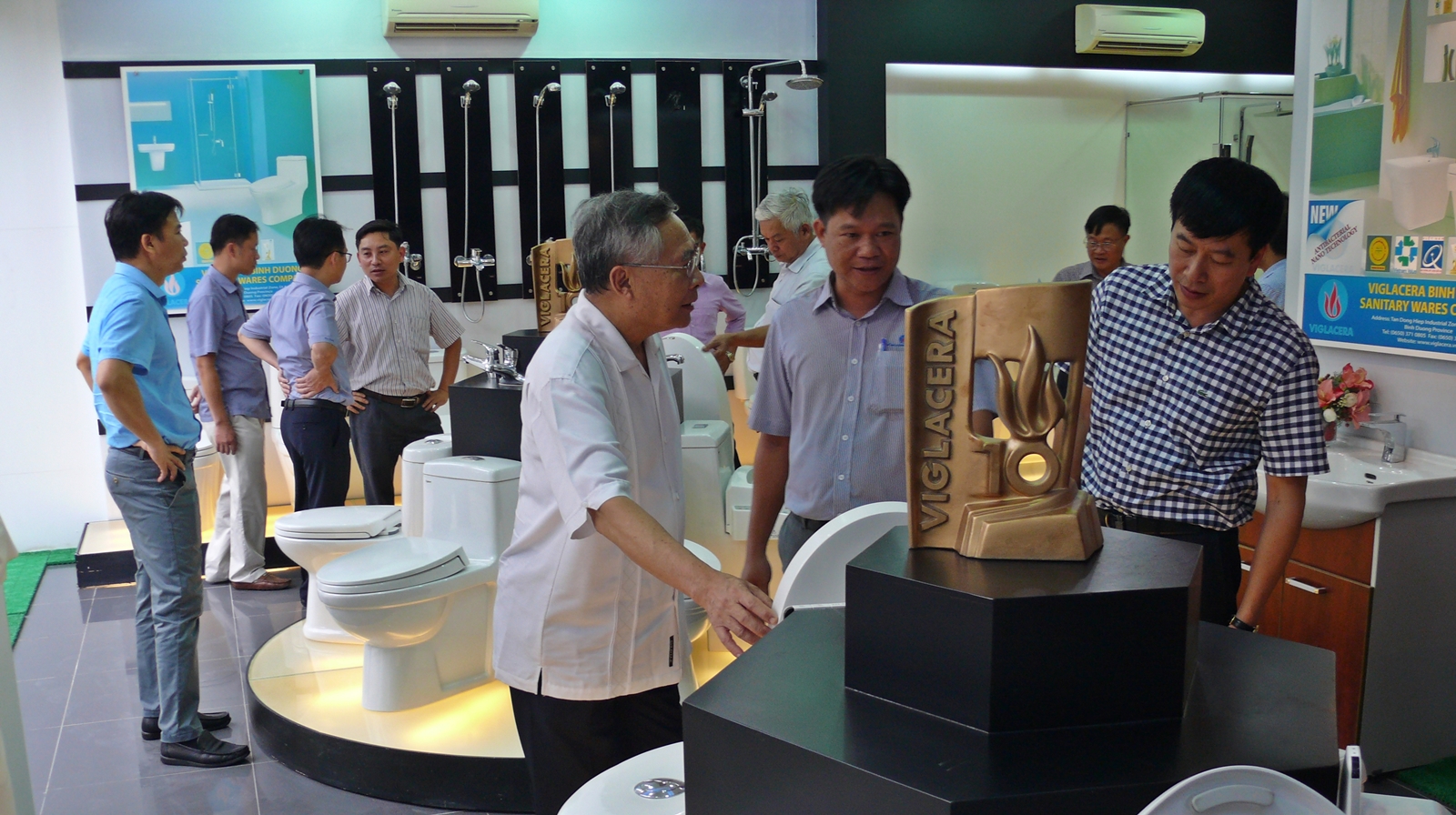 Hình ảnh đoàn thăm nhà máy sản xuất của Công ty Kính nổi Viglacera và Công ty Sứ Viglacera Bình Dương: