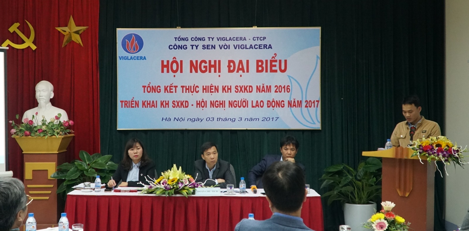 Ngày 03/03/2017, tại Hà Nội, Công ty Sen Vòi Viglacera tổ chức Hội nghị người lao động năm 2017. Về dự Hội nghị có đồng chí Luyện Công Minh, Chủ tịch HĐQT, đồng chí Nguyễn Anh Tuấn, Tổng giám đốc Tổng công ty; đồng chí Nguyễn Quý Tuấn, Ủy viên Hội đồng quản trị, Chủ tịch Công đoàn Tổng công ty; đồng chí Nguyễn Minh Tuấn, Phó Tổng giám đốc TCT; Các đồng chí trưởng các phòng ban TCT, Ban lãnh đạo Công ty CP Thương mại Viglacera và Ban Giám đốc và đại diện Phòng, Ban cùng 56 đại biểu của Công ty Sen Vòi Viglacera.