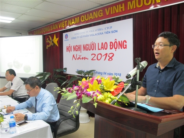 Vừa qua, Công ty cổ phần Viglacera Tiên Sơn đã tổ chức thành công Hội nghị đại biểu người lao động năm 2018. Đến dự Hội nghị có đồng chí Nguyễn Quý Tuấn - Ủy viên HĐQT, Chủ tịch Công đoàn Tổng công ty Viglacera – CTCP và gần 80 đại biểu đại diện cho 870 CBCNV, người lao động trong Công ty.