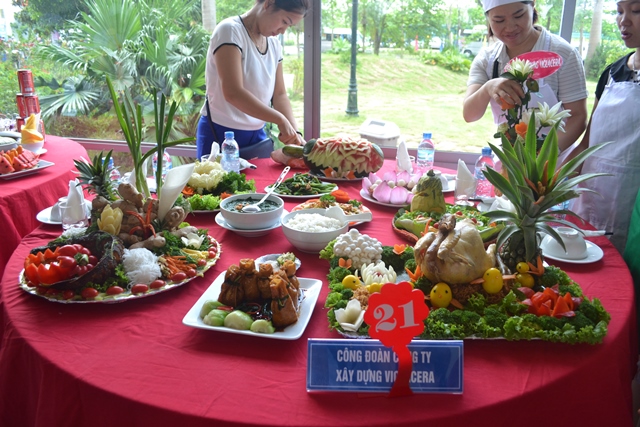 Trong khoảng thời gian 2 tiếng đồng hồ, các đội thi đã nấu, trình bày các món ăn một cách khéo léo, ngon và hấp dẫn. Ban giám khảo đã đánh giá cao sự chuẩn bị chu đáo, thực đơn phong phú với chất lượng món ăn tương đối đồng đều, đủ dinh dưỡng, hợp vệ sinh, đáp ứng được tiêu chuẩn cuộc thi. Một số món ăn đạt yêu cầu nghề mà các đơn vị nên học hỏi như món tôm rang của văn phòng CĐ TCty hay món cá kho, rau xào, dưa muối của trường CĐ nghề Viglacera… Qua đó, các đơn vị cần tiếp tục phát huy để chất lượng cơm ca ngày càng được nâng cao.