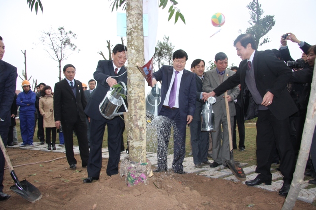 Chủ tịch UBND Thành phố Hà Nội Nguyễn Thế Thảo và Bộ trưởng Bộ Xây dựng Trịnh Đình Dũng tham dự Tết trồng cây của Viglacera tại KĐT Đặng Xá
