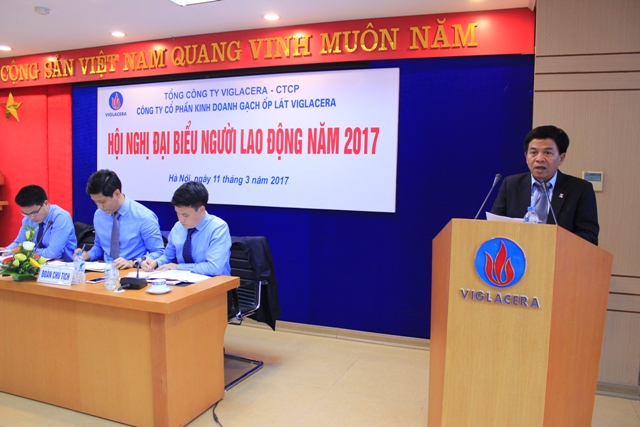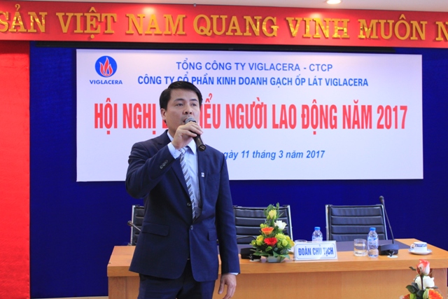 Phát biểu chỉ đạo tại Hội nghị, đ/c Nguyễn Quý Tuấn – Chủ tịch Công đoàn Tổng công ty đã ghi nhận những nỗ lực phấn đấu của tập thể người lao động Công ty cổ phần Kinh doanh Gạch ốp lát Viglacera trong năm qua, đồng thời nhấn mạnh Ban lãnh đạo Công ty cần xây dựng chiến lược phát triển cụ thể trong 5 năm tới, đặc biệt là chính sách thu hút, đào tạo và tôn vinh người lao động đáp ứng được yêu cầu phát triển của Tổng công ty.