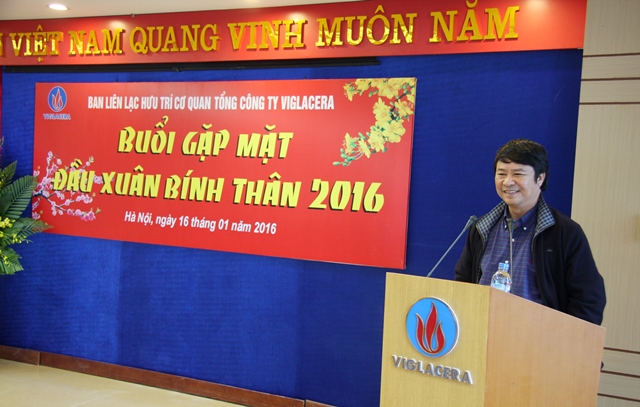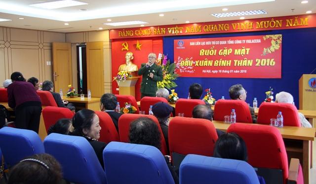 Mỗi dịp tết đến xuân về, Ban Liên lạc hưu trí cơ quan TCT Viglacera – CTCP đều tổ chức gặp mặt đầu xuân để ôn lại những kỷ niệm thời kỳ công tác cũng như tăng cường gắn bó, chia sẻ tình cảm giữa những cán bộ hưu trí với cán bộ đương nhiệm. Sáng ngày, 16/1/2016, Ban Liên lạc hưu trí cơ quan TCT đã tổ chức buổi gặp mặt 2016 tại chính trụ sở chính của TCT Viglacera – CTCP – số 1 Đại lộ Thăng Long, Hà Nội.