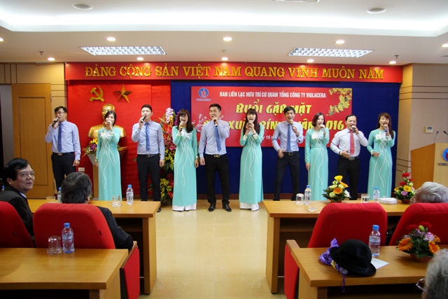 Mở đầu buổi gặp mặt là chương trình văn nghệ do thế hệ trẻ TCT Viglacera - CTCP và các đơn vị trực thuộc TCT biểu diễn, dành tặng cho ban hưu trí để thay lời chúc mừng đầu xuân cũng như thể hiện lòng kính trọng đối với thế hệ trước.