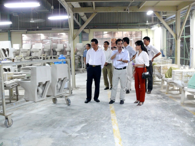 Đoàn công tác đến thăm dây chuyền sản xuất tại Công ty Kính nổi Viglacera và Công ty Sứ Viglacera Bình Dương