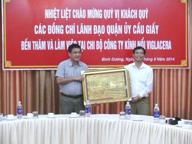 Quận ủy Cầu Giấy tặng quà lưu niệm cho Chi bộ Công ty Kính nổi Viglacera Bình Dương