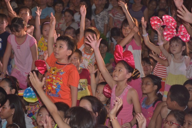 Trong đêm hội, hàng trăm em nhỏ được nhận quà trung thu, thưởng thức các tiết mục biểu diễn văn nghệ, múa lân sôi động, các hoạt cảnh vui nhộn, ảo thuật đặc sắc, được nghe những câu chuyện về sự tích chú Cuội, chị Hằng và được tham gia phá cỗ, rước đèn trông trăng.