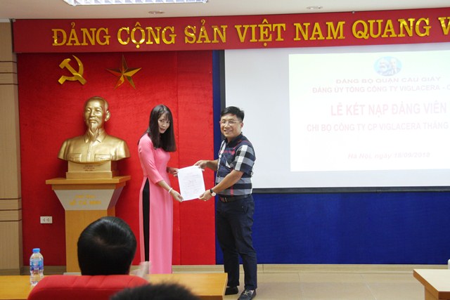 Ngày 18/09/2018, tại trụ sở Tòa nhà Viglacera, số 1 Đại lộ Thăng Long, Hà Nội, Đảng ủy Tổng công ty Viglacera – CTCP đã phối hợp với Chi bộ Công ty CP Viglacera Thăng Long tổ chức Lễ kết nạp Đảng cho hai quần chúng ưu tú.