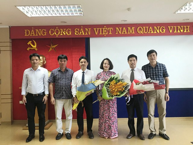 Ủy viên BTV Đảng ủy TCT Viglacera và Giám đốc Công ty Đầu tư hạ tầng và đô thị Viglacera chúc mừng 3 đồng chí Đảng viên mới