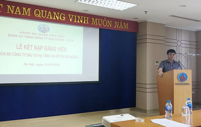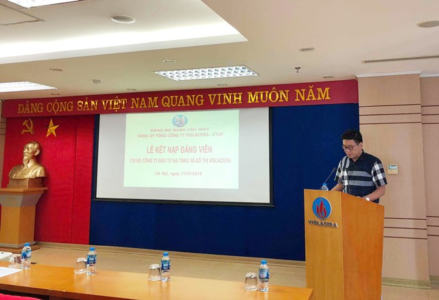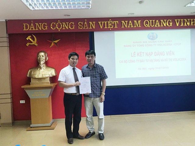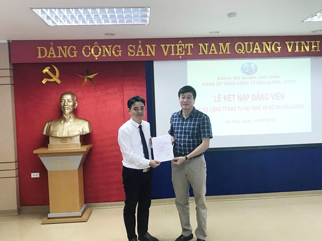 Ngày 31/07/2018, tại trụ sở Tòa nhà Viglacera, số 1 Đại lộ Thăng Long, Hà Nội, Đảng ủy Tổng công ty Viglacera – CTCP đã phối hợp với Chi bộ Công ty Đầu tư Hạ tầng và Đô thị Viglacera tổ chức Lễ kết nạp Đảng cho ba quần chúng ưu tú.