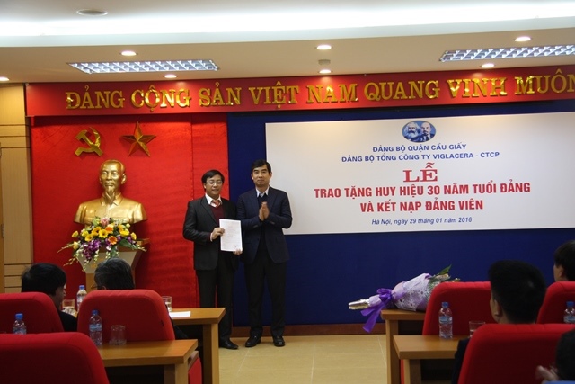 Nhân kỷ niệm 86 năm ngày thành lập Đảng CSVN, ngày 29/01/2016, Đảng ủy TCT Viglacera – CTCP đã tổ chức Lễ trao tặng Huy hiệu 30 năm tuổi Đảng cho đ/c Nguyễn Quang Vinh - Chi bộ Ban Thương mại và kết nạp Đảng viên mới tại hội trường tầng 15, tòa nhà Viglacera, số 1 Đại lộ Thăng Long, Tp. Hà Nội.