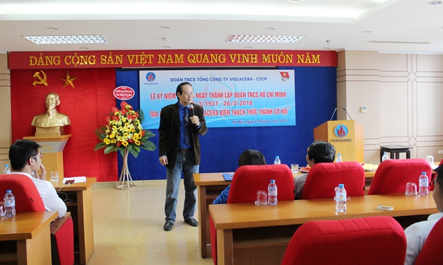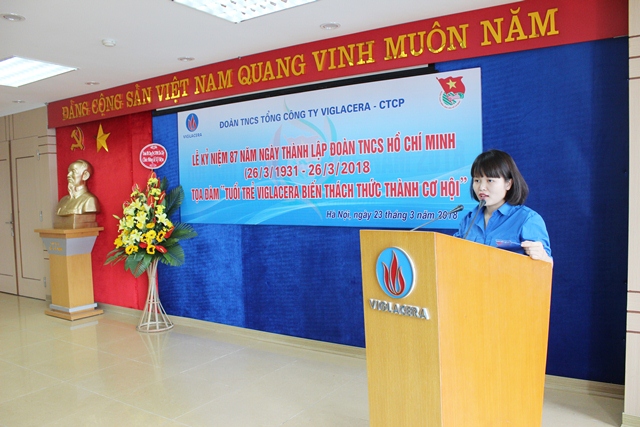 Chiều ngày 23 tháng 3 vừa qua, Đoàn thanh niên Tổng công ty Viglacera - CTCP đã long trọng tổ chức Lễ kỷ niệm 87 năm ngày thành lập Đoàn TNCS Hồ Chí Minh (26/3/1931 - 26/3/2018) và Toạ đàm “Tuổi trẻ Viglacera biến thách thức thành cơ hội”.