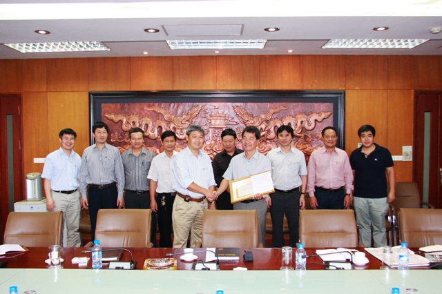 Thượng tá Hồ Ngọc Ngãi, Phó Trưởng phòng, Phòng PA81, Công an thành phố Hà Nội trao Bằng khen cho Đồng chí Nguyễn Anh Tuấn – Tổng giám đốc Tổng công ty Viglacera.
