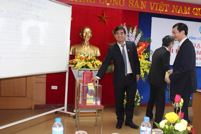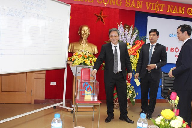 Các đồng chí đảng viên bỏ phiếu bầu ban chấp hành và đại biểu đi dự Đại hội đại biểu đảng bộ TCT lần thứ XIV