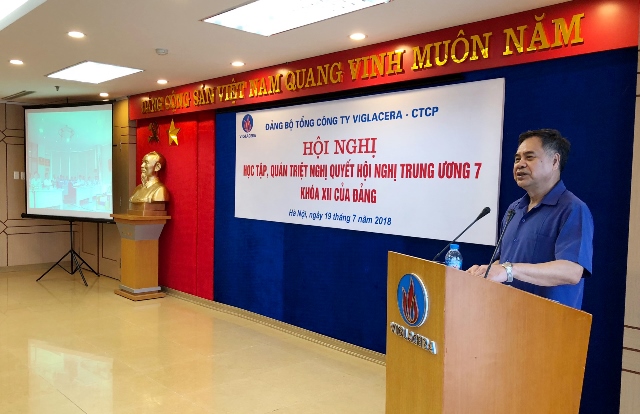 Ngày 19/7/2018, Đảng ủy Tổng công ty Viglacera – CTCP tổ chức Hội nghị học tập, quán triệt và triển khai thực hiện Nghị quyết Hội nghị lần thứ bảy Ban chấp hành trung ương Đảng (khóa XII) tới toàn thể các Đảng viên thuộc Đảng bộ TCT Viglacera, riêng các Đảng viên tại Chi bộ Công ty Kính nổi Viglacera tham gia học trực tuyến từ xa.