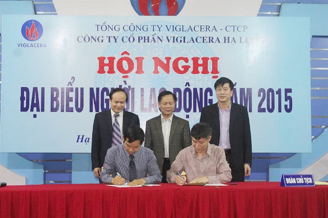 Phát biểu động viên tại hội nghị, Anh hùng lao động Nguyễn Văn Bình - Chủ tịch Công đoàn Xây dựng Việt Nam ghi nhận sự đồng thuận, sự gắn kết giữa chính quyền và tổ chức Công đoàn Công ty trong năm qua, do đó người lao động luôn tích cực thi đua lao động sản xuất, nâng cao thu nhập, nâng cao năng suất, nâng cao chất lượng sản phẩm góp phần xây dựng Công ty ngày càng phát triển. Đồng thời, Anh hùng lao động Nguyễn Văn Bình biểu dương thành tích của tập thể CBCNV Công ty trong năm 2014 đã được Tổng Liên đoàn Lao động Việt Nam tặng Cờ thi đua; nhiều cá nhân, tập thể được nhận Bằng khen của Tổng liên đoàn lao động Việt Nam, Công đoàn ngành Xây dựng và Giấy khen của Công đoàn Tổng công ty Viglacera.